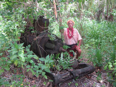 Another request that Dave had was "old Coke bottles". He had heard from someone that Ulithi, like Majuro, having been a big R&R facility during the war, had old Coke bottles laying around. Stanley took us to the former dump (now their taro patch), and we rooted around in the dirt and found a couple of 1944 Coke bottles (the month and year that the bottle was made is stamped on the bottle). Dave has been contacted by a friend of a friend who's an executive with Coca Cola in Atlanta who asked for a couple of old bottles for their collection.